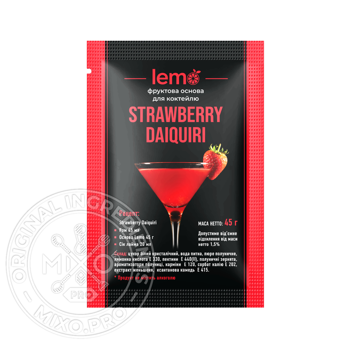 Дайкірі-полуниця, LEMO, коктейльна основа, 45гр*15шт